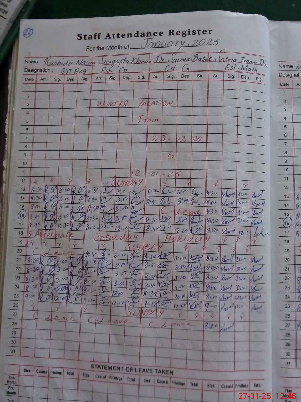 | 36**** | Ra**** Na**** | SST | Regular | 0 | 0 | 0 | 0 | 0 | 0 | 0 | 0 | 0 | Casual |