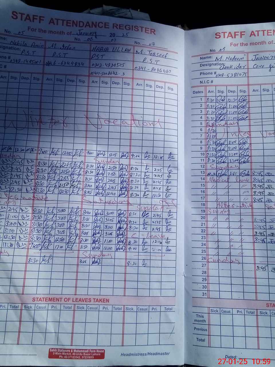 | Name: Mu**** Sh**** Designation: (School Headmaster's/Headmistress's) PST Phone/Cell Number: 03**** |