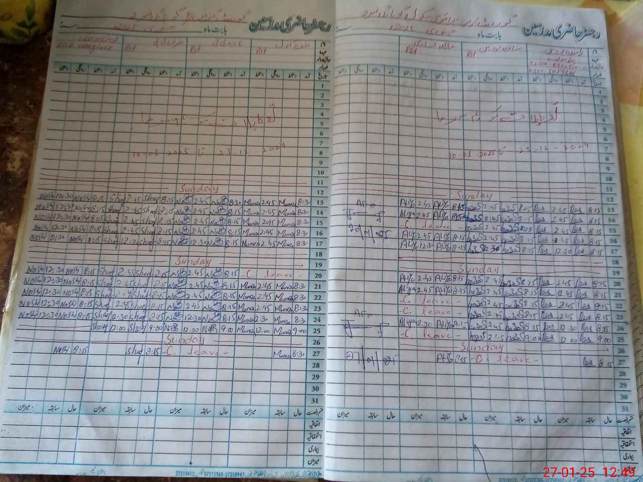 | CNIC | Full Name | Designation | R/C | Absence During Last Calender Month |
