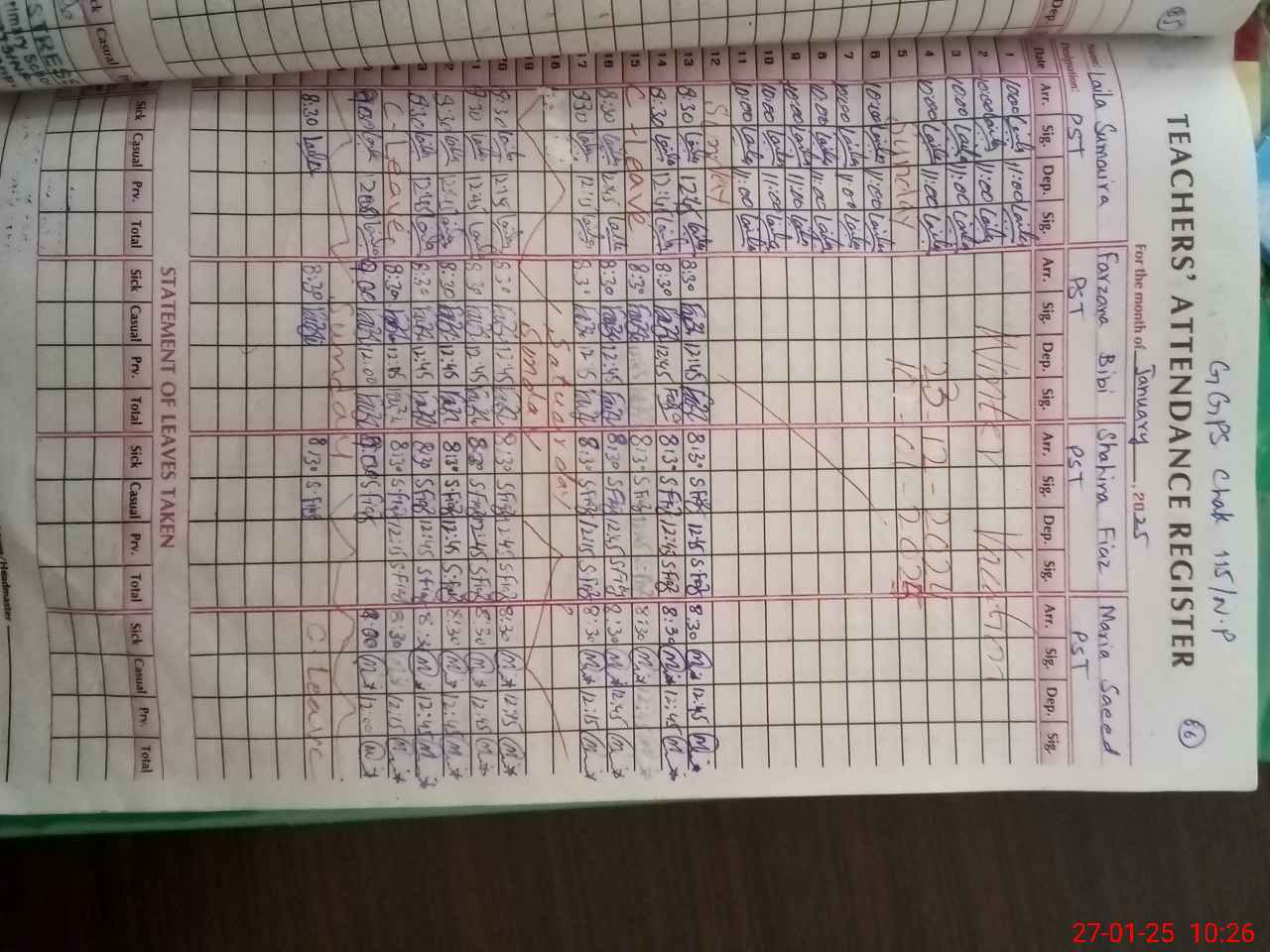 | Name: La**** Su**** Designation: (School Headmaster's/Headmistress's) PST Phone/Cell Number: 03**** |