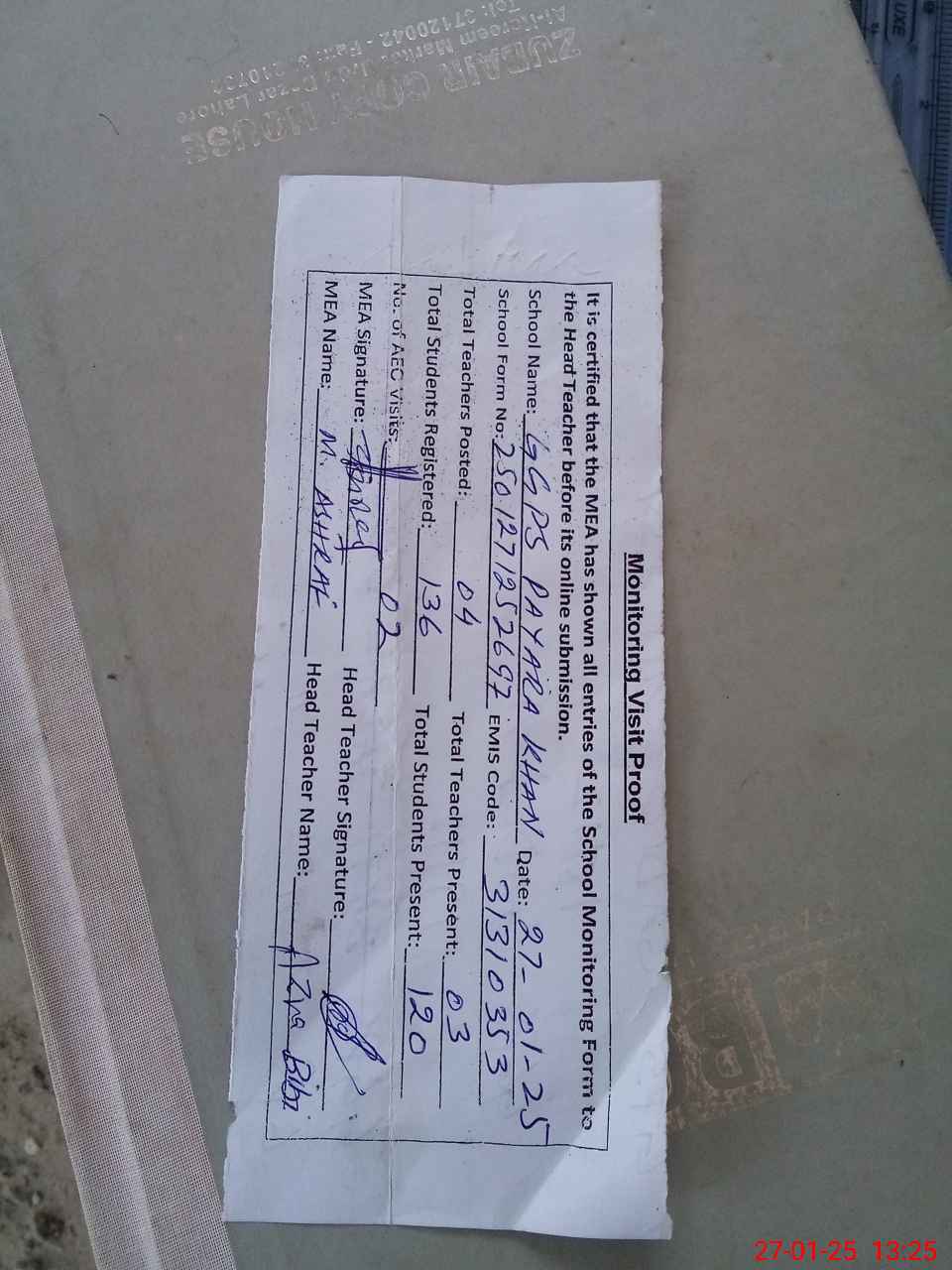 | EMIS Code: 31310353 | Name of School: GGPS PAYARA KHAN | |||