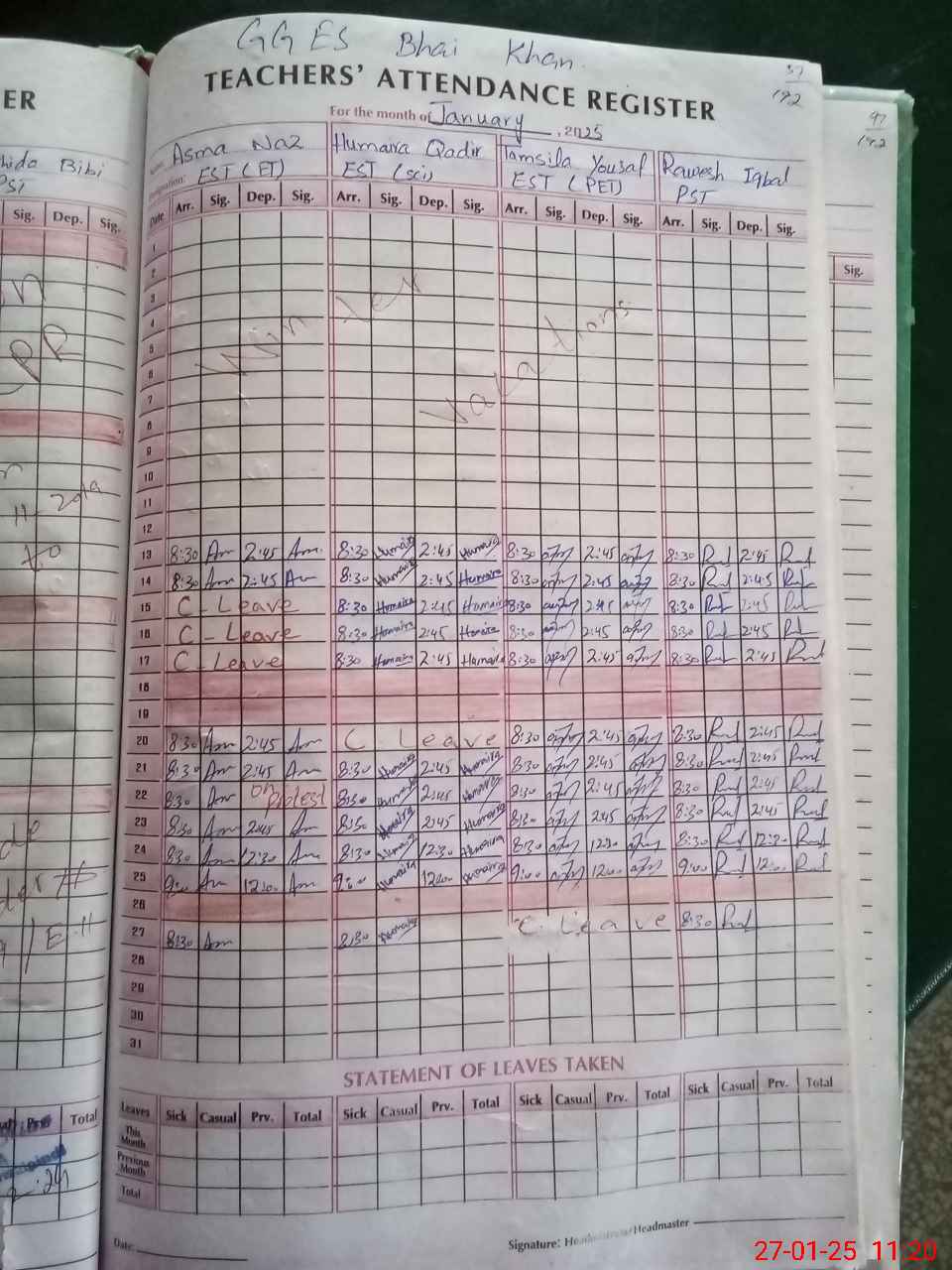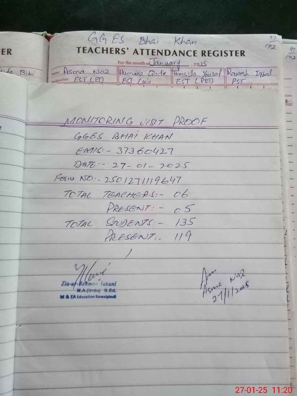 | Attendance Register | Head Teacher | MEA with School | Visit Proof |