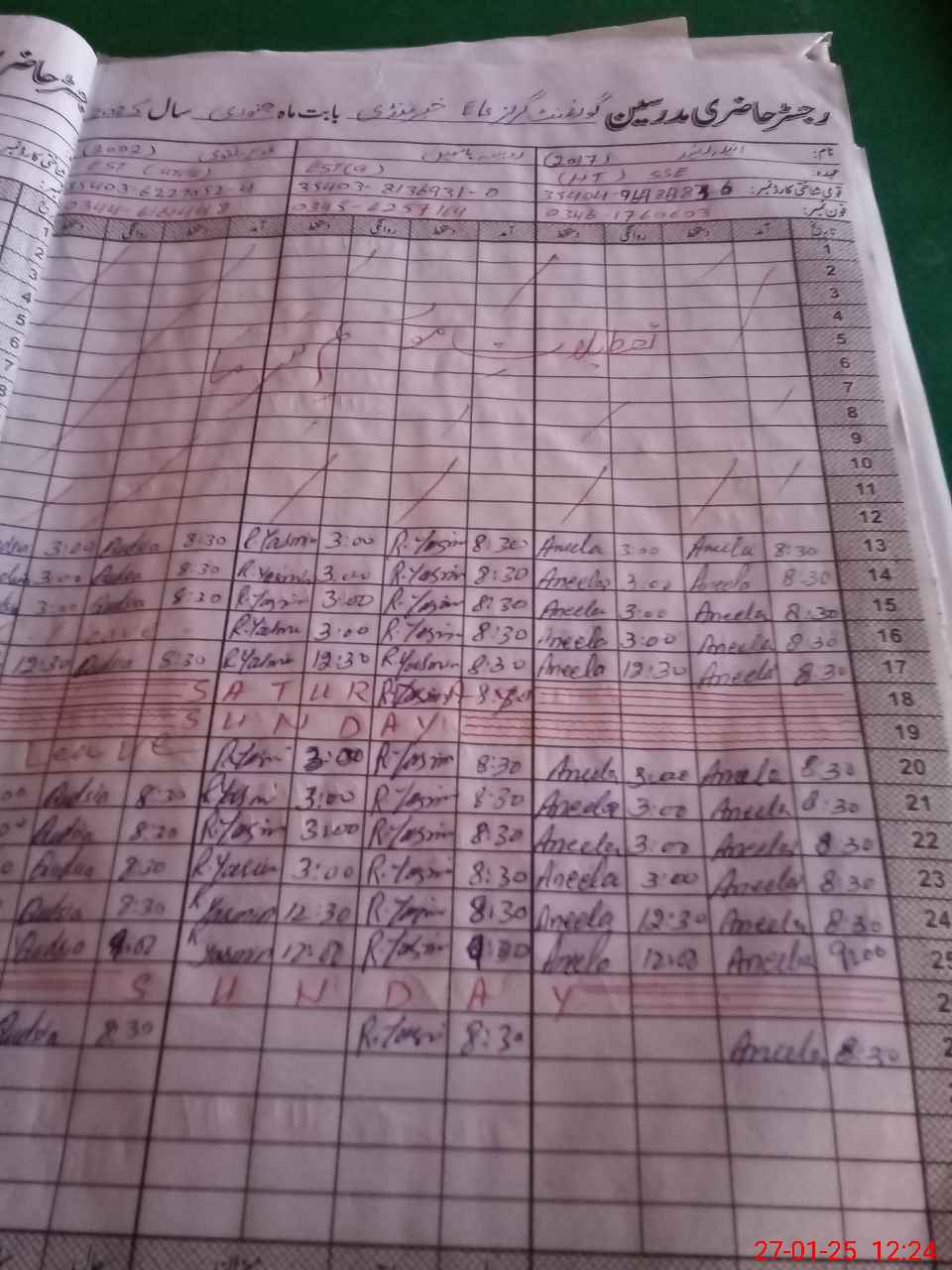 | CNIC | Full Name | Designation | R/C | Absence During Last Calender Month |