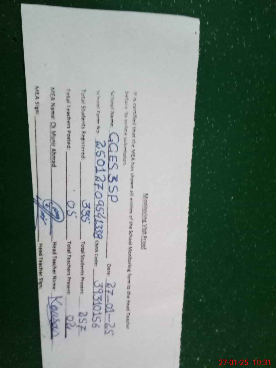 | EMIS Code: 39310156 | Name of School: GGES CHAK 3/S.P | |||
