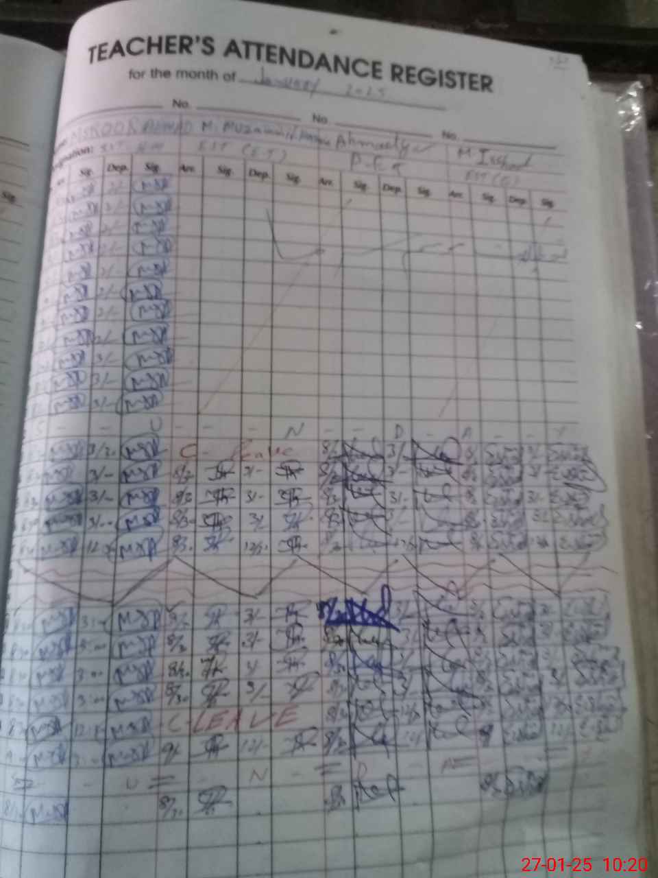 | CNIC | Full Name | Designation | R/C | Absence during last cal. month |