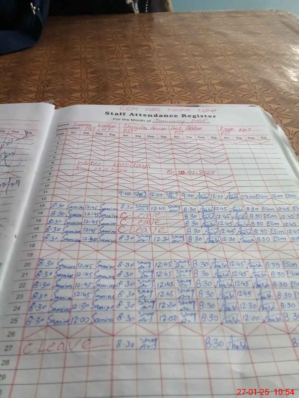 | 31**** | Sa**** Ko**** | PST | Regular | 0 | 0 | 0 | 0 | 0 | 0 | 0 | 0 | 0 | Casual |