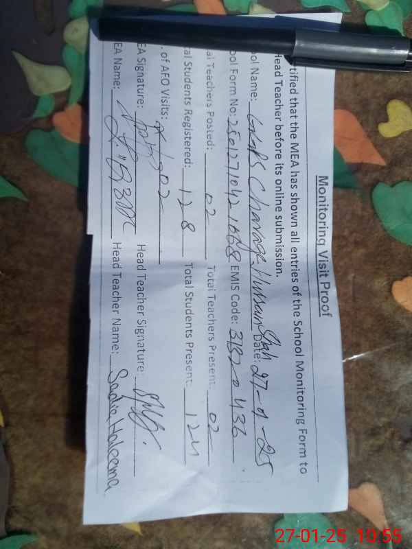 | EMIS Code: 31320436 | Name of School: GGPS CHARAGH HUSSAIN SHAH | |||