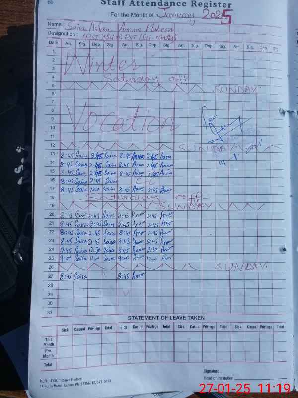 | Name: Sa**** As**** Designation: (School Headmaster's/Headmistress's) PST/PTC/JV Phone/Cell Number: 03**** |