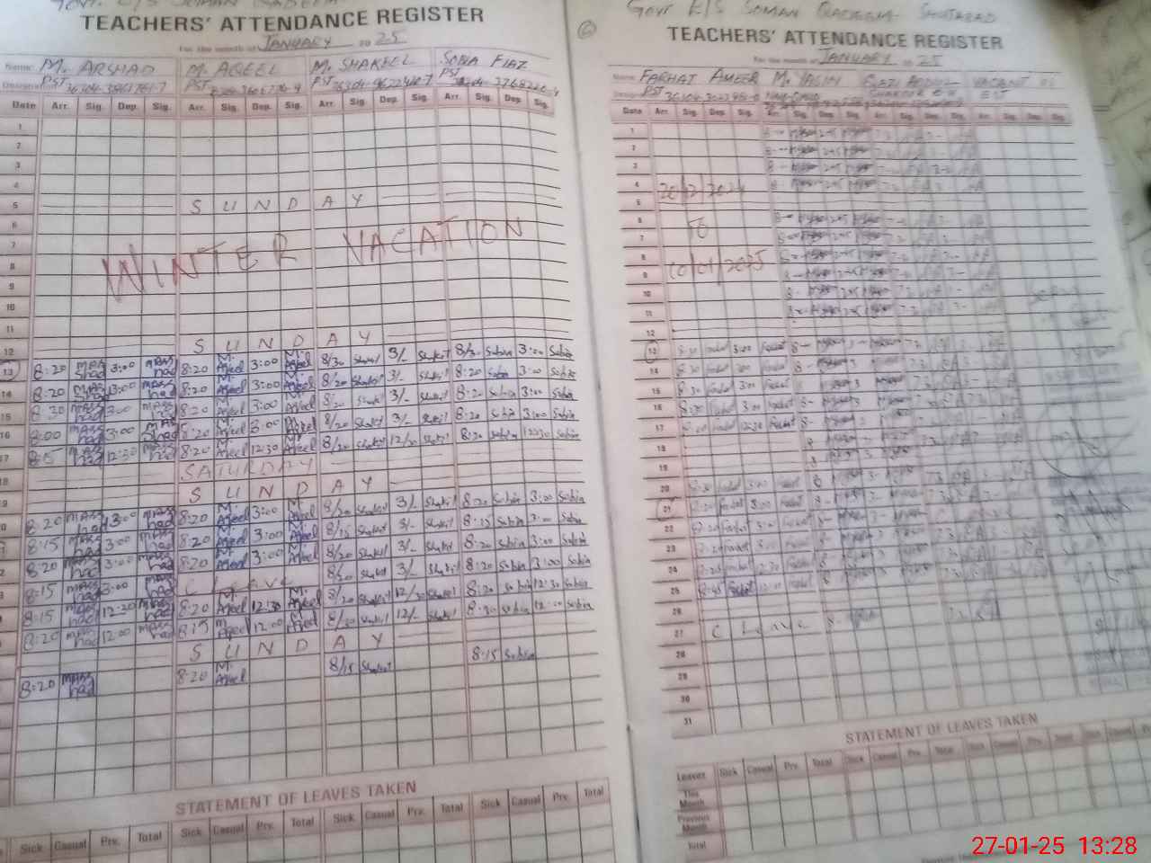 | CNIC | Full Name | Designation | R/C | Absence During Last Calender Month |