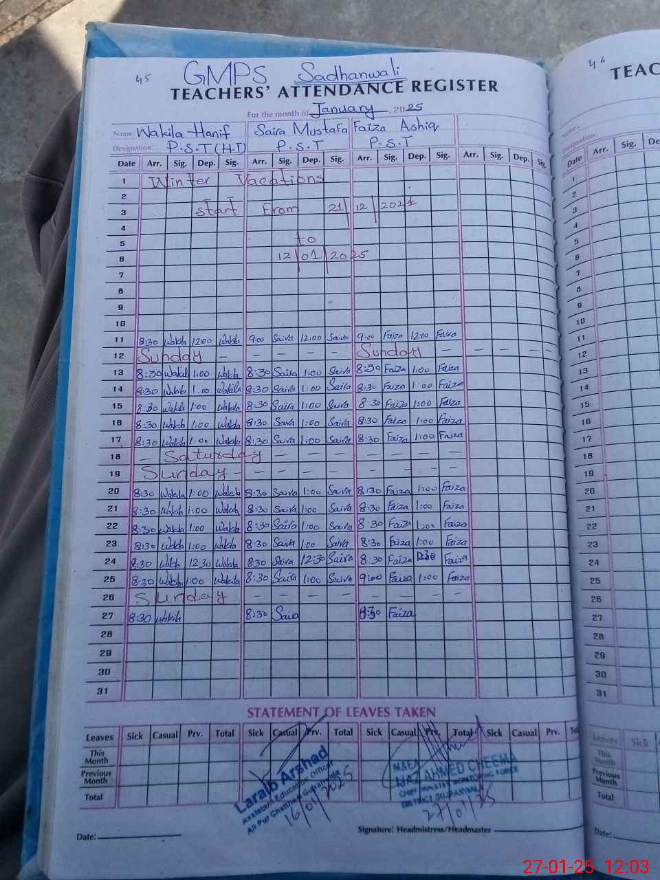 | Name: Wa**** Ha**** Designation: (School Headmaster's/Headmistress's) PST Phone/Cell Number: 03**** |