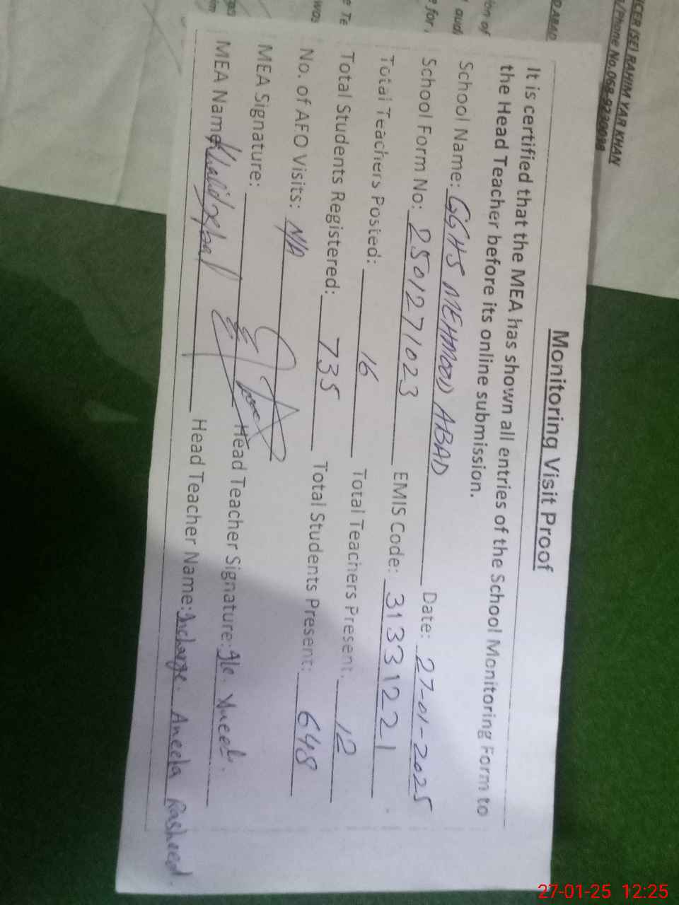 | EMIS Code: 31331221 | Name of School: GGHS MEHMOOD ABAD | |||