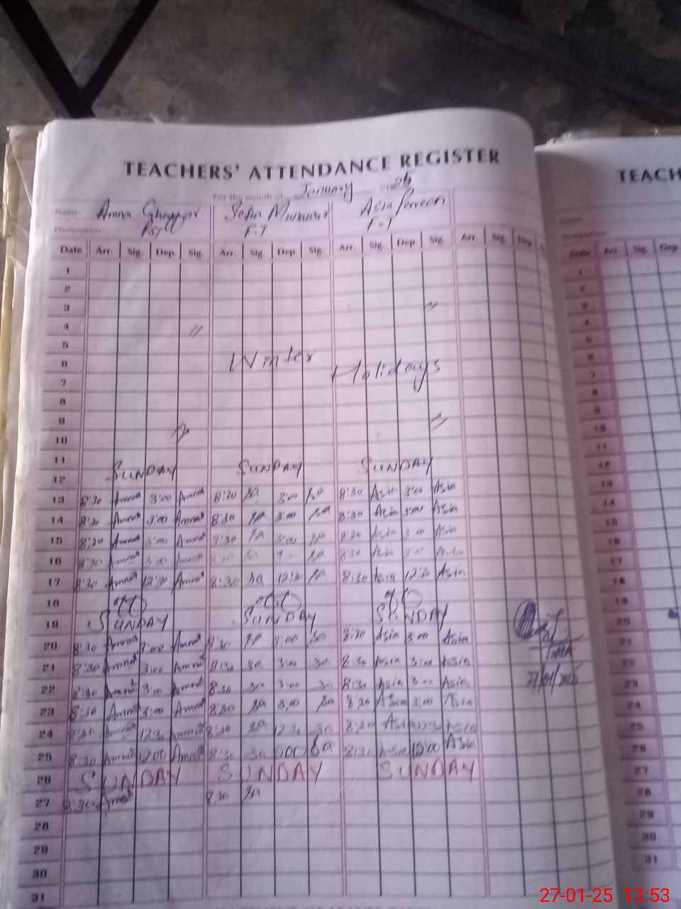 | CNIC | Full Name | Designation | R/C | Absence During Last Calender Month |