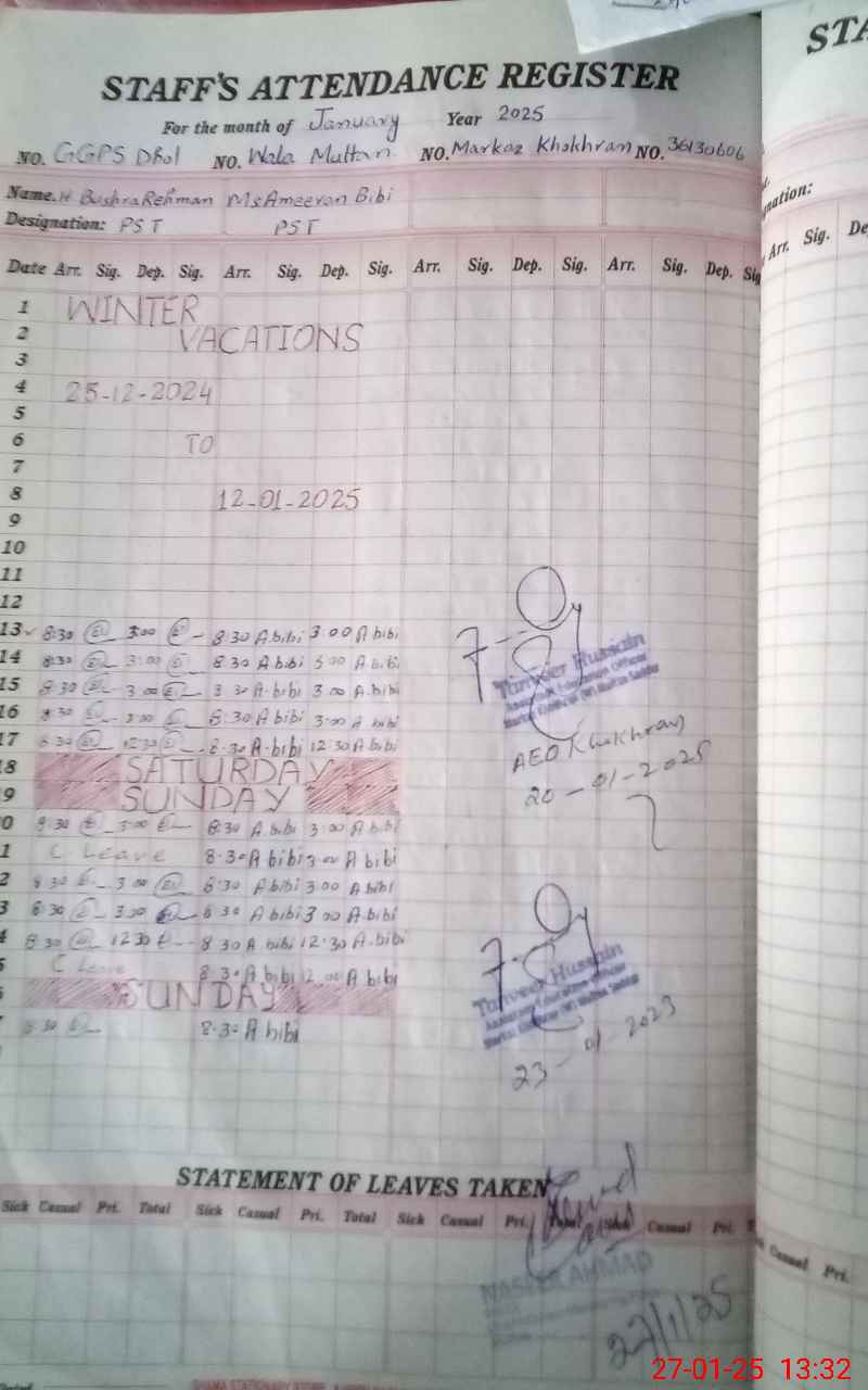 | District: MULTAN | Tehsil: MULTAN SADAR | Markaz: KHOKHRAN - FEMALE | Level: Primary | |