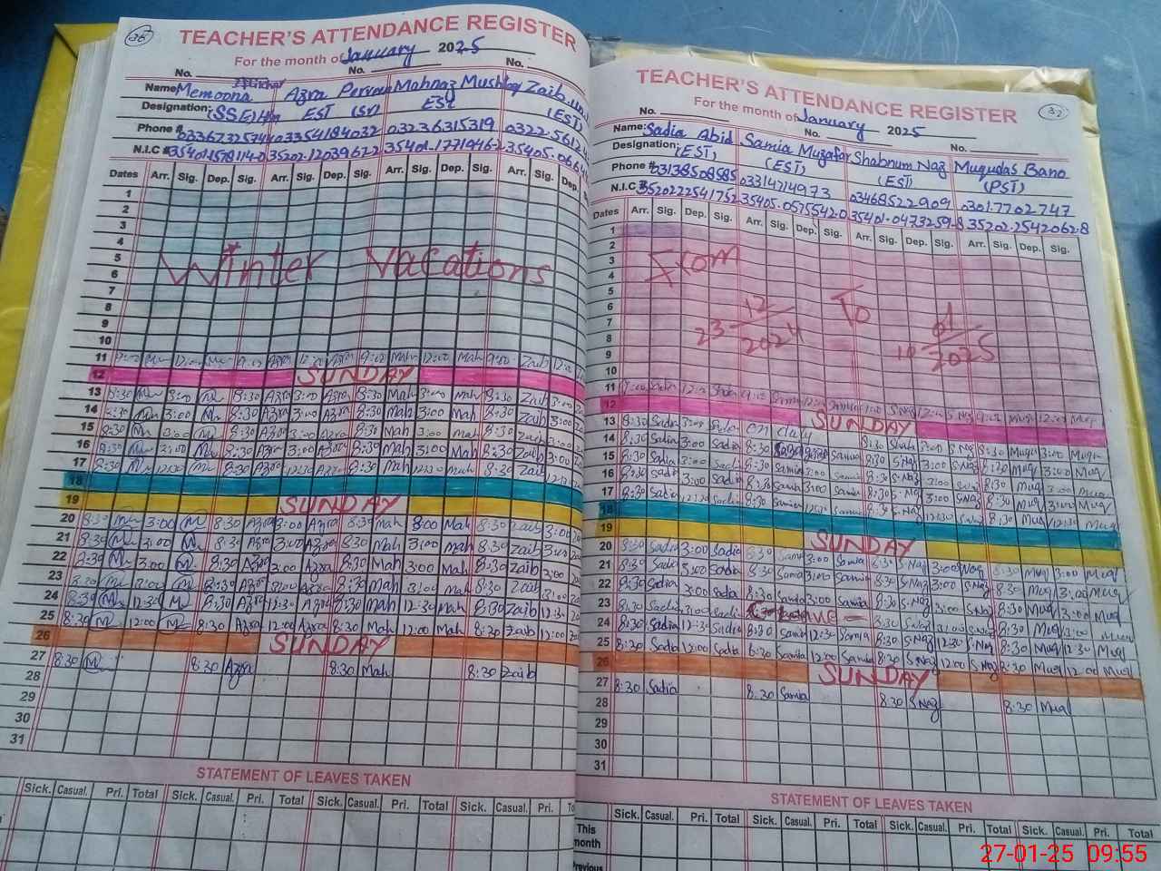 | CNIC | Full Name | Designation | R/C | Absence During Last Calender Month |