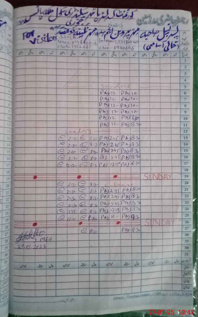 | Name: Pa**** An**** Designation: (School Headmaster's/Headmistress's) INCHARGE ,PRINCIPAL Phone/Cell Number: 03**** |