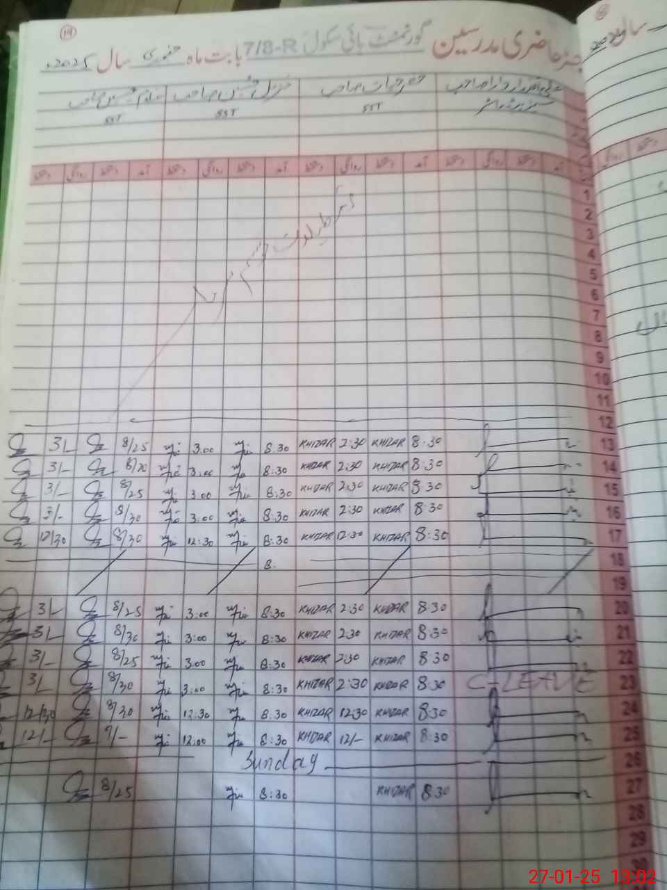 | CNIC | Full Name | Designation | R/C | Absence During Last Calender Month |