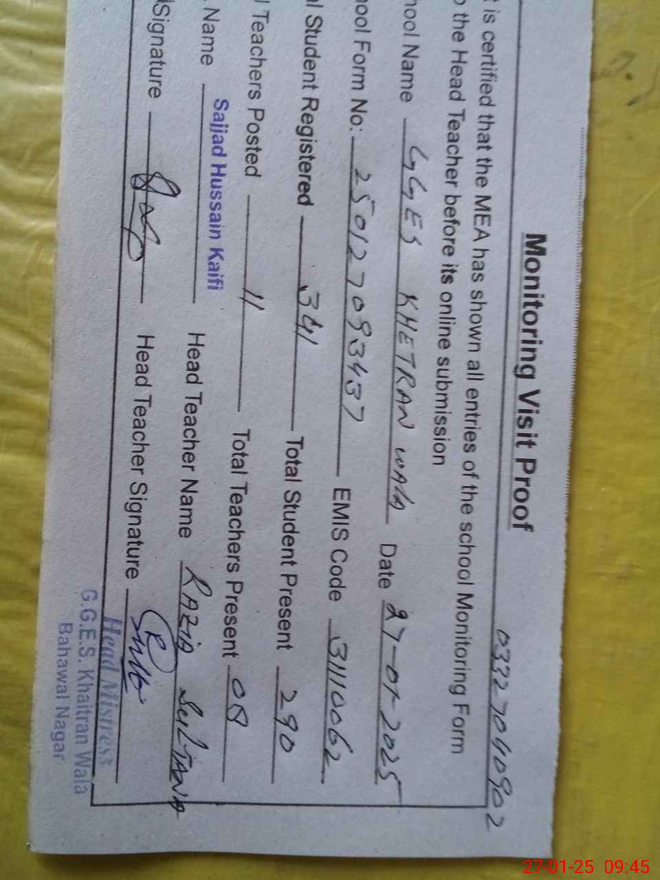 | EMIS Code: 31110062 | Name of School: GGES KHETRAN WALA | |||