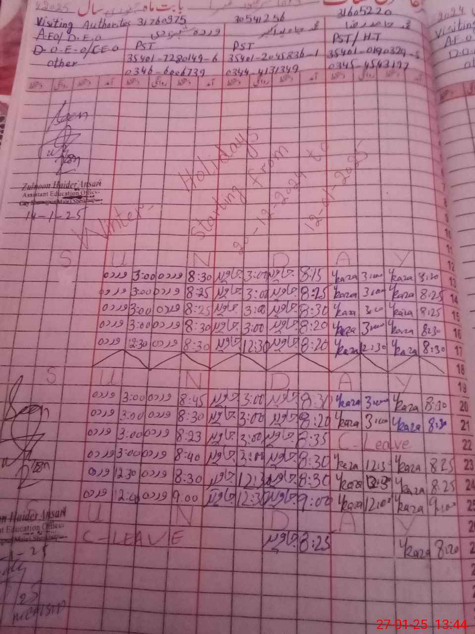 | Name: MHa**** Ra**** Designation: (School Headmaster's/Headmistress's) PST Phone/Cell Number: 03**** |