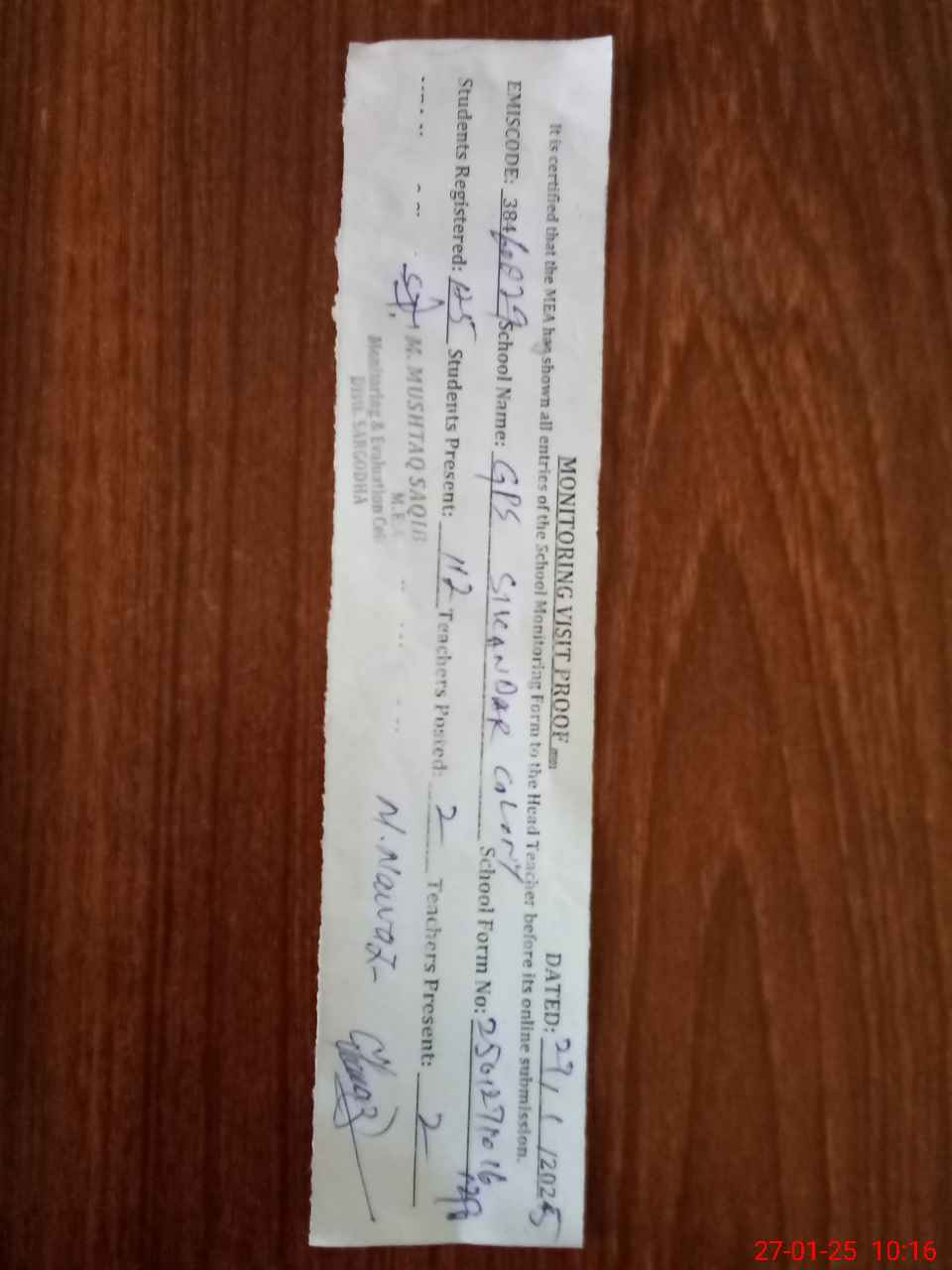 | EMIS Code: 38460829 | Name of School: GPS SAKINDER COLONY | |||