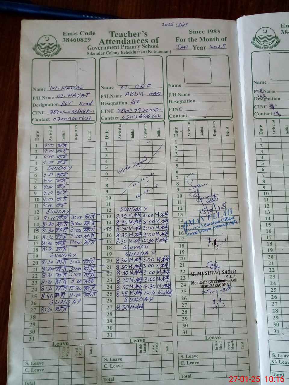| Name: MU**** NA**** Designation: (School Headmaster's/Headmistress's) PST Phone/Cell Number: 03**** |