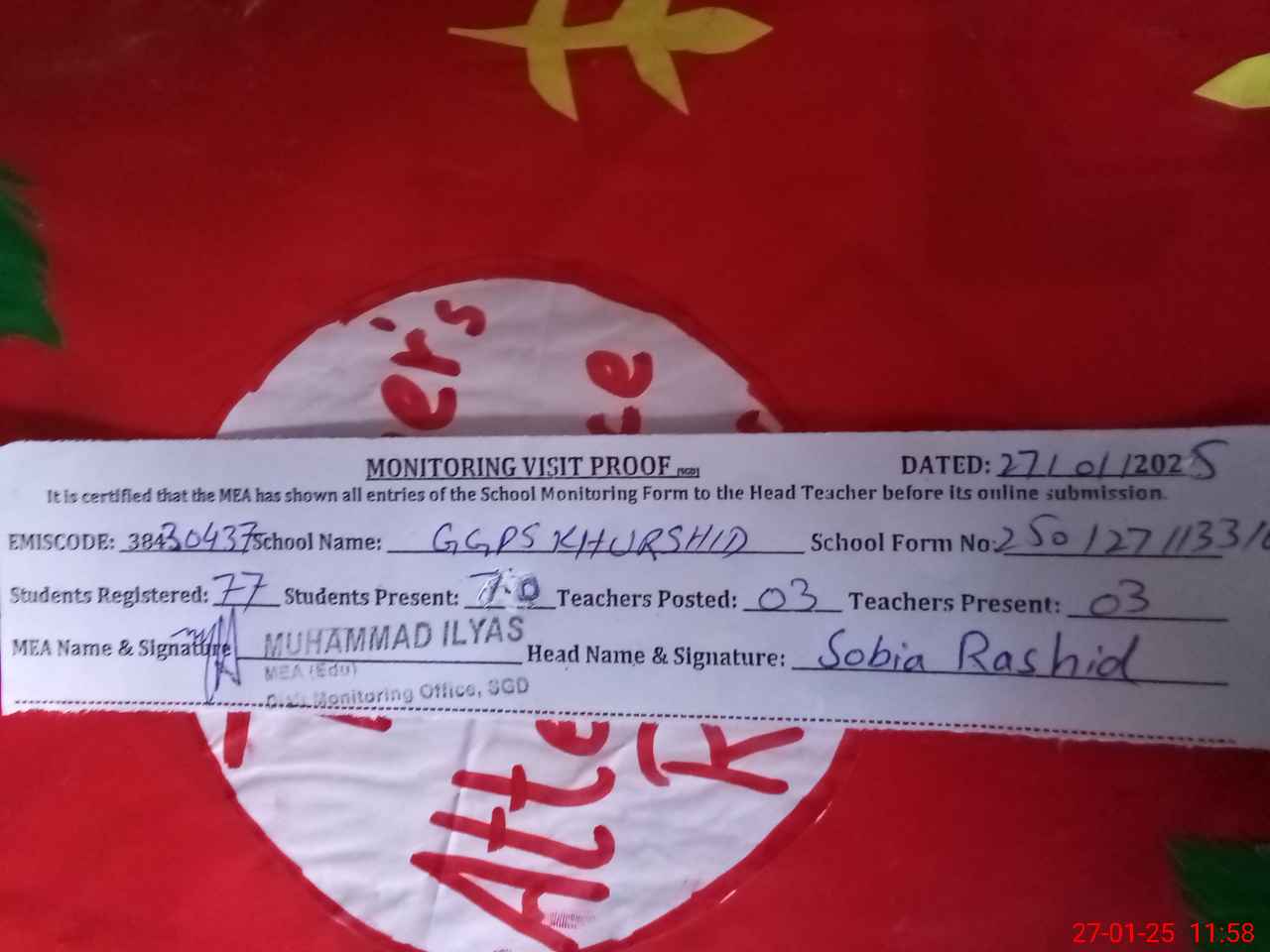 | EMIS Code: 38430437 | Name of School: GGPS KHURSHID | |||