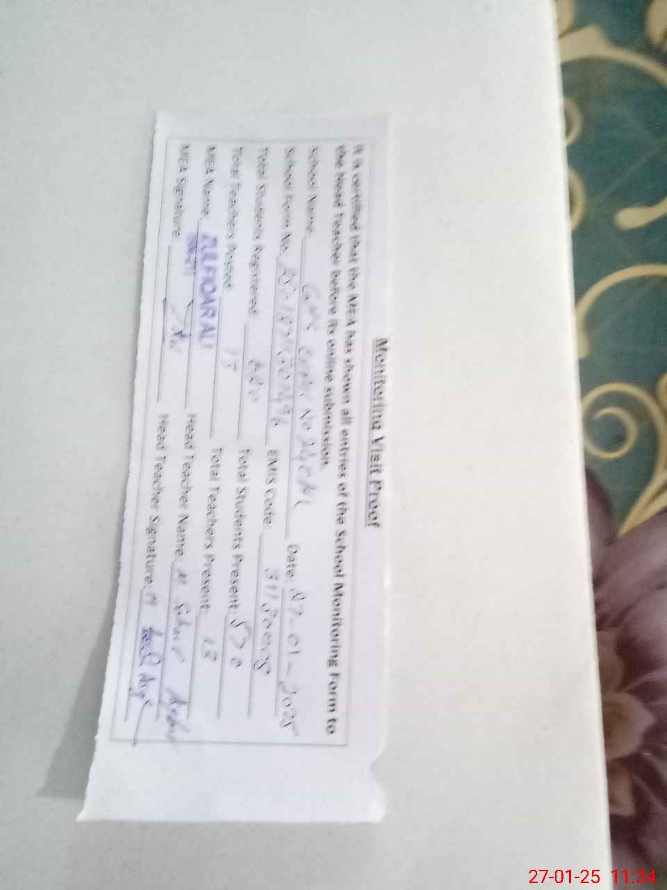 | Attendance Register | Head Teacher | MEA with School | Visit Proof |