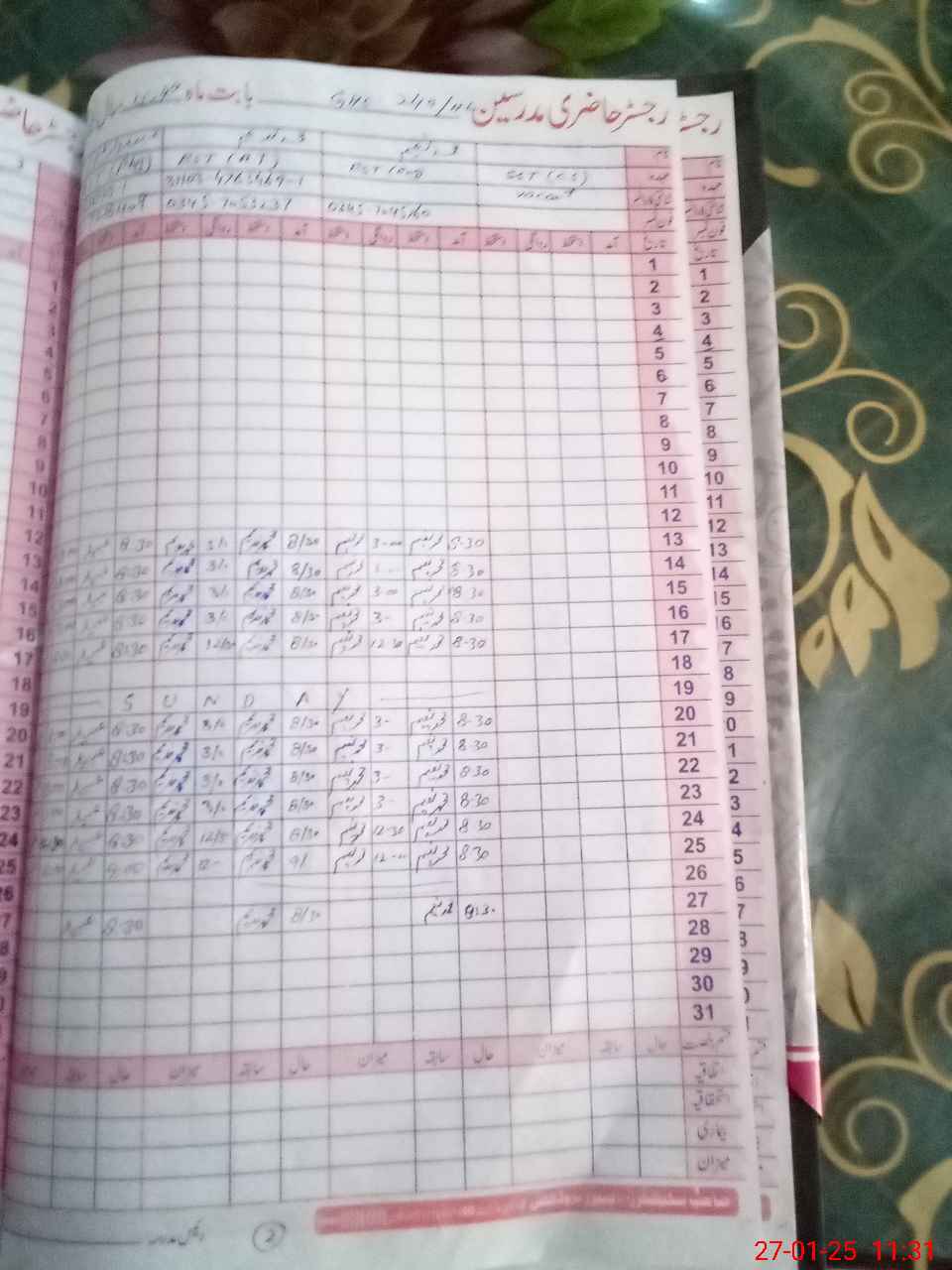 | CNIC | Full Name | Designation | R/C | Absence During Last Calender Month |
