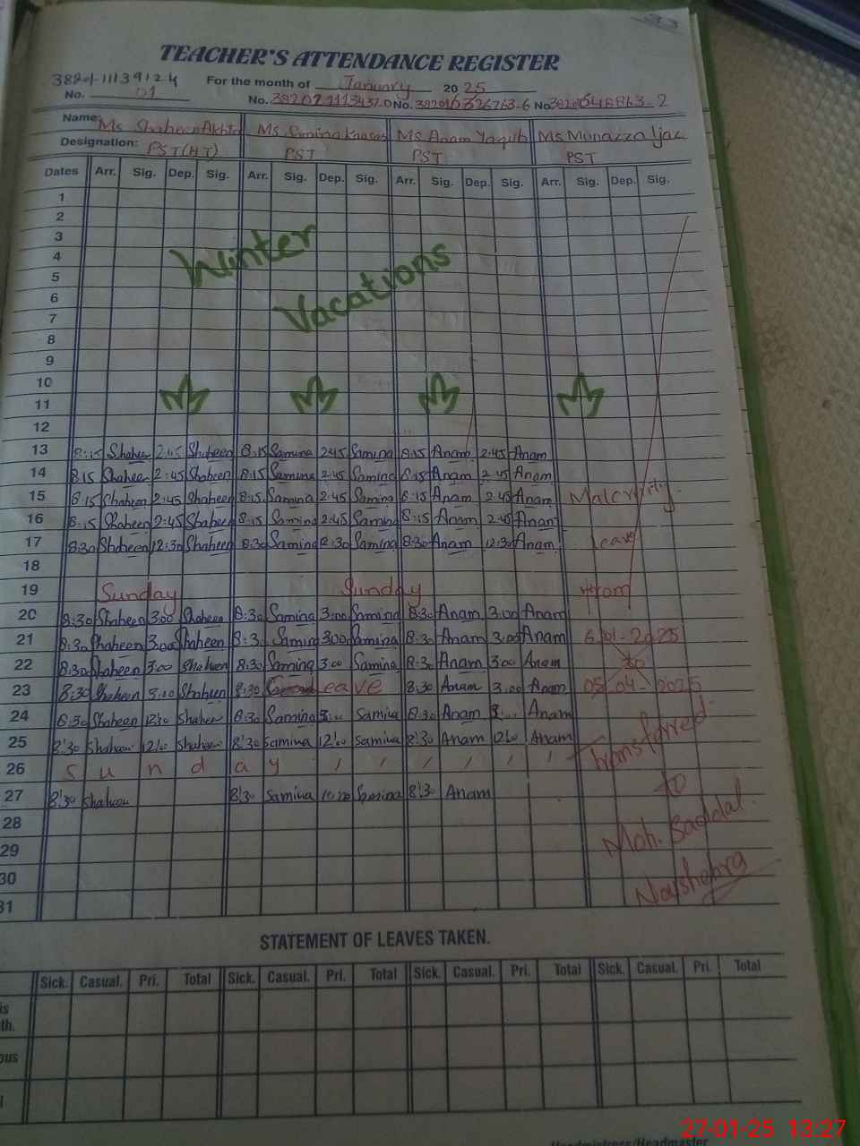 | 38**** | Sa**** Ka**** | PST | Regular | 0 | 0 | 0 | 0 | 0 | 0 | 0 | 0 | 0 | Absent (Un-Authorized) |