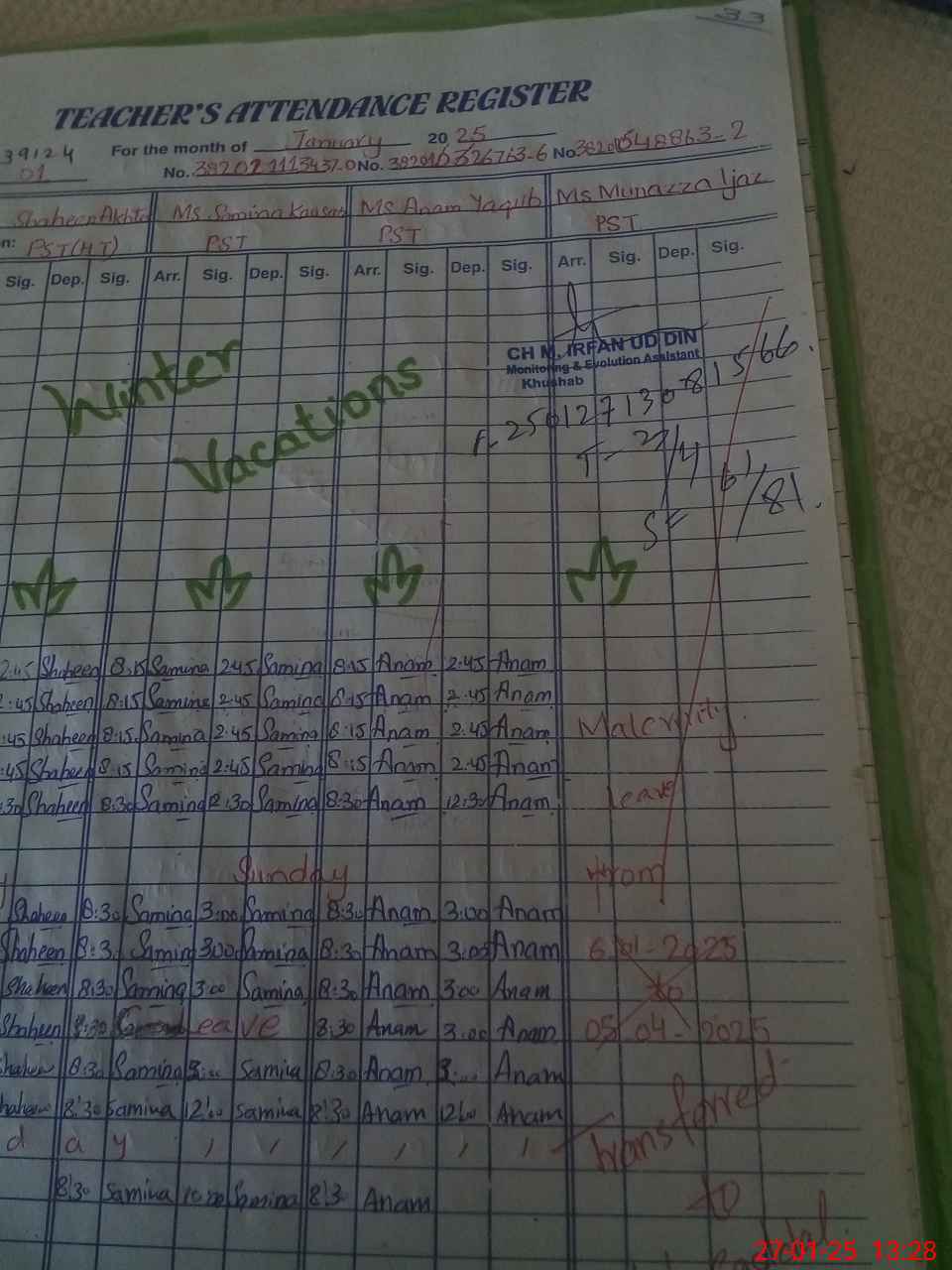 | Name: Sh**** Ak**** Designation: (School Headmaster's/Headmistress's) PST Phone/Cell Number: 03**** |