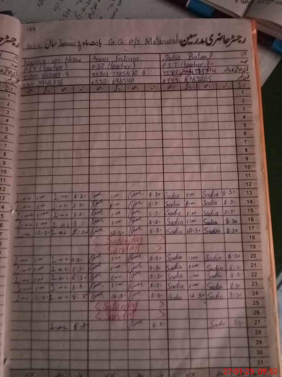 | Name: Sa**** Ba**** Designation: (School Headmaster's/Headmistress's) PST Phone/Cell Number: 03**** |