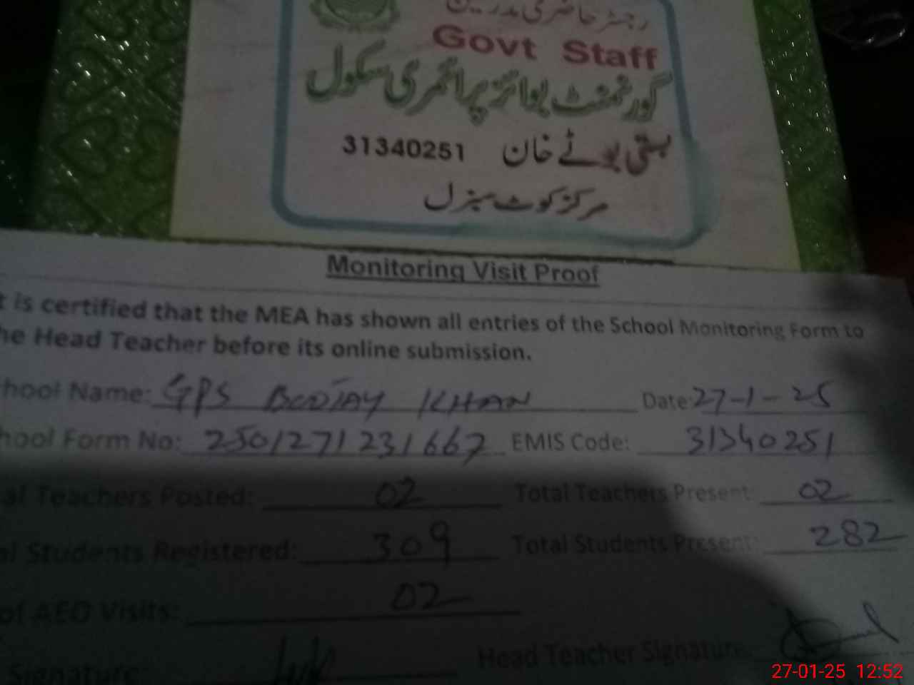 | EMIS Code: 31340251 | Name of School: GPS BASTI BOOTAY KHAN | |||