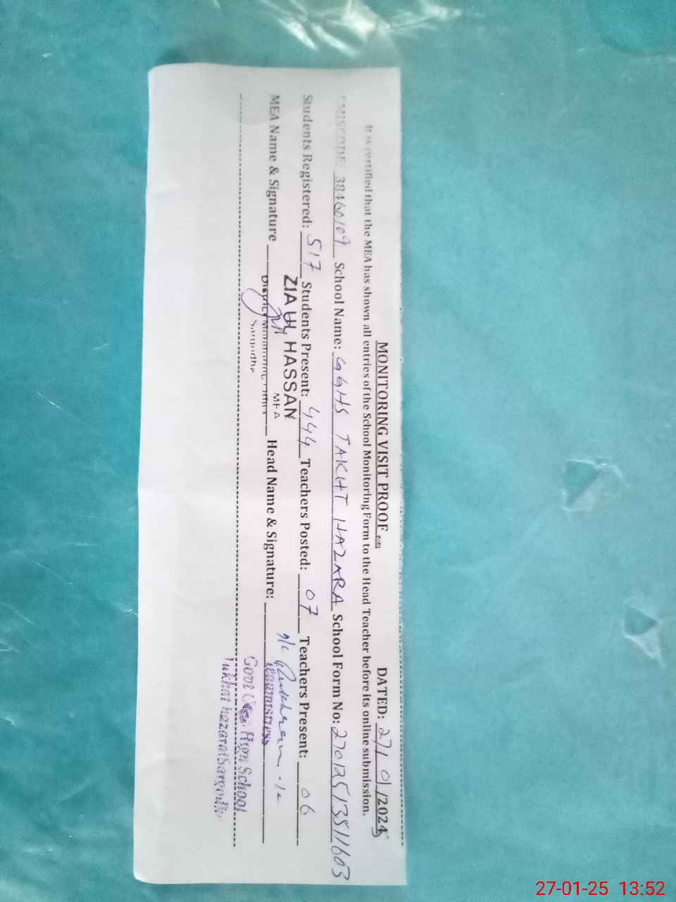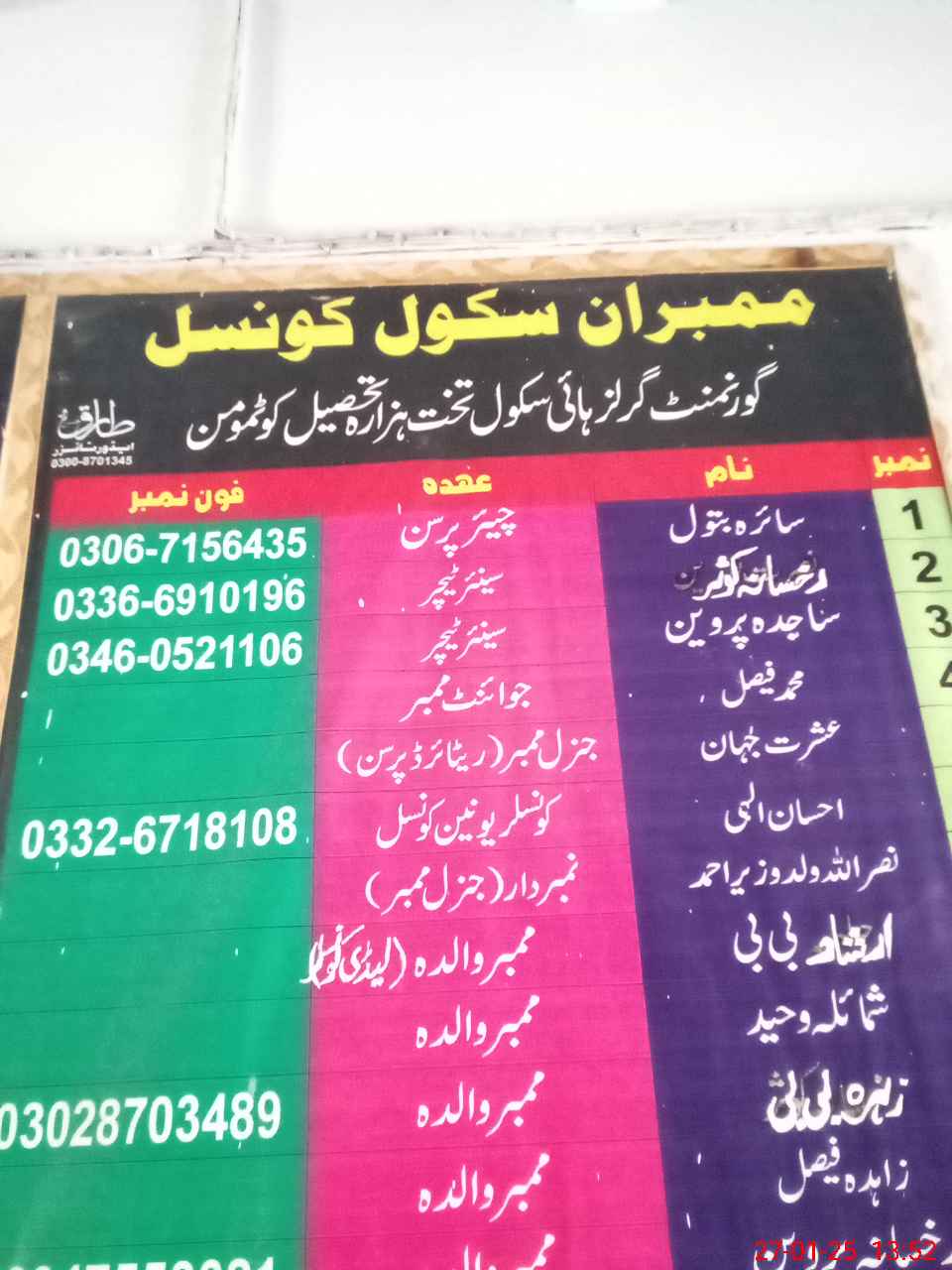 | EMIS Code: 38460109 | Name of School: GGHS TAKHT HAZARA | |||