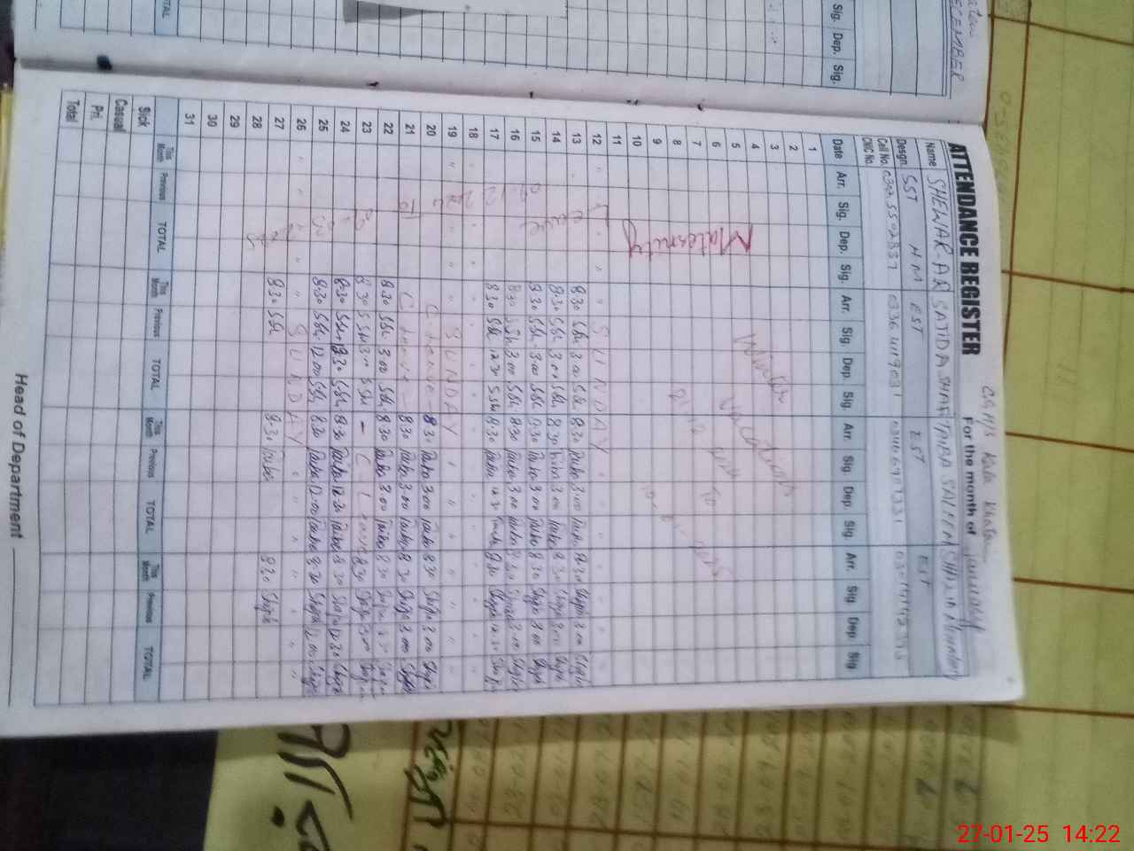 | CNIC | Full Name | Designation | R/C | Absence During Last Calender Month |