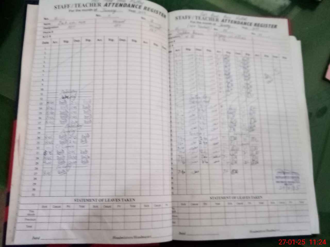 | Leave | Duty | Absent | Maternity | Medical | Ex- Pak |