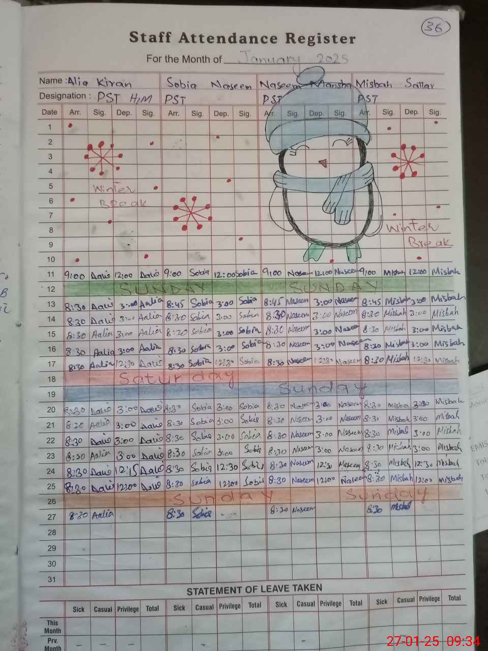 | Leave | Duty | Absent | Maternity | Medical | Ex- Pak |