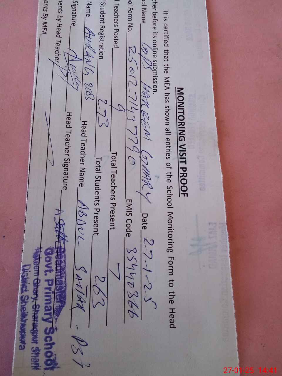| EMIS Code: 35440366 | Name of School: GPS HAKEEM GHARY | |||