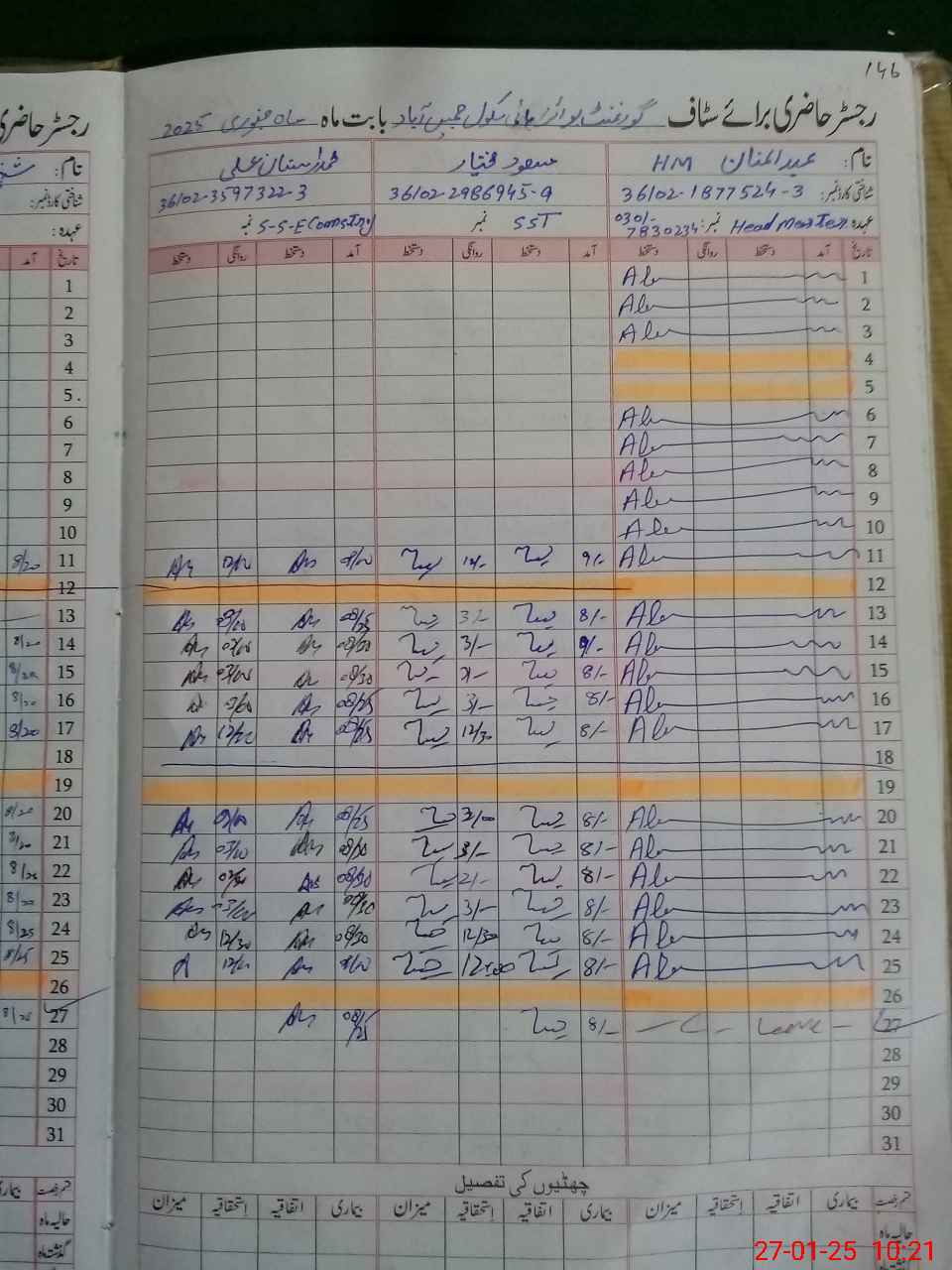 | Name: Ab**** Ma**** Designation: (School Headmaster's/Headmistress's) HEADMASTER Phone/Cell Number: 03**** |