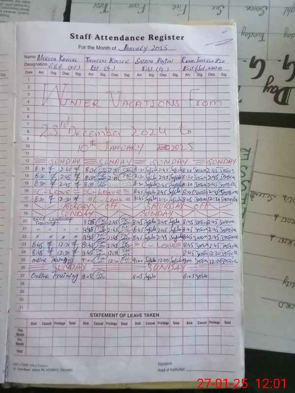 | Total no. of Classrooms: 8 No. of Classrooms Used for Teaching: 4 No. of Classrooms Storing Old Furniture, FTBs, etc: 0Comments if Any: Teachers and students presence on sis is |