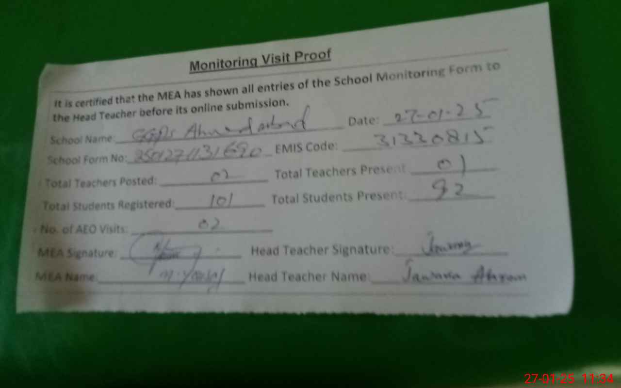 | EMIS Code: 31330815 | Name of School: GGPS AHMED ABAD | |||
