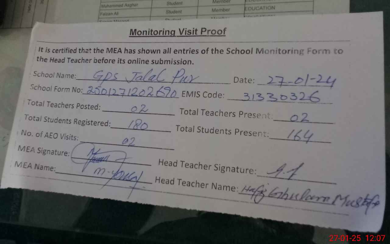 | EMIS Code: 31330326 | Name of School: GPS JALAL PUR | |||