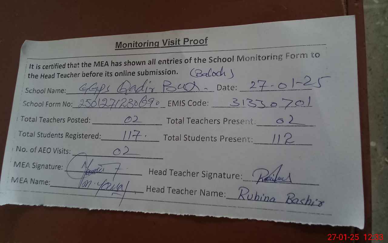 | EMIS Code: 31330701 | Name of School: GGPS QADIR BUX BALOCH | |||