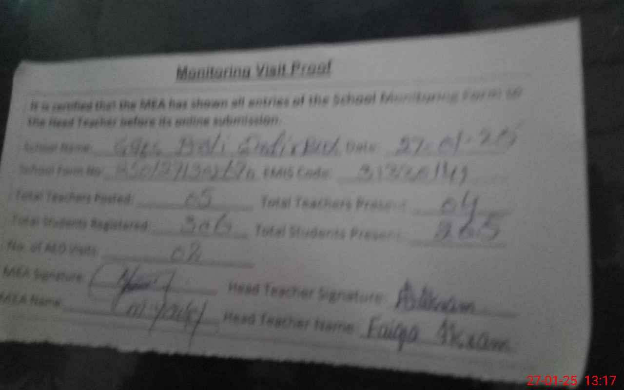 | Attendance Register | Head Teacher | MEA with School | Visit Proof |