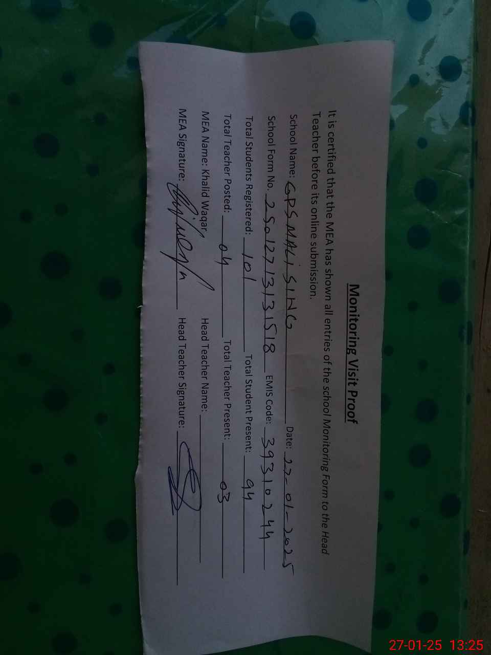 | EMIS Code: 39310244 | Name of School: GPS MALI SINGH | |||