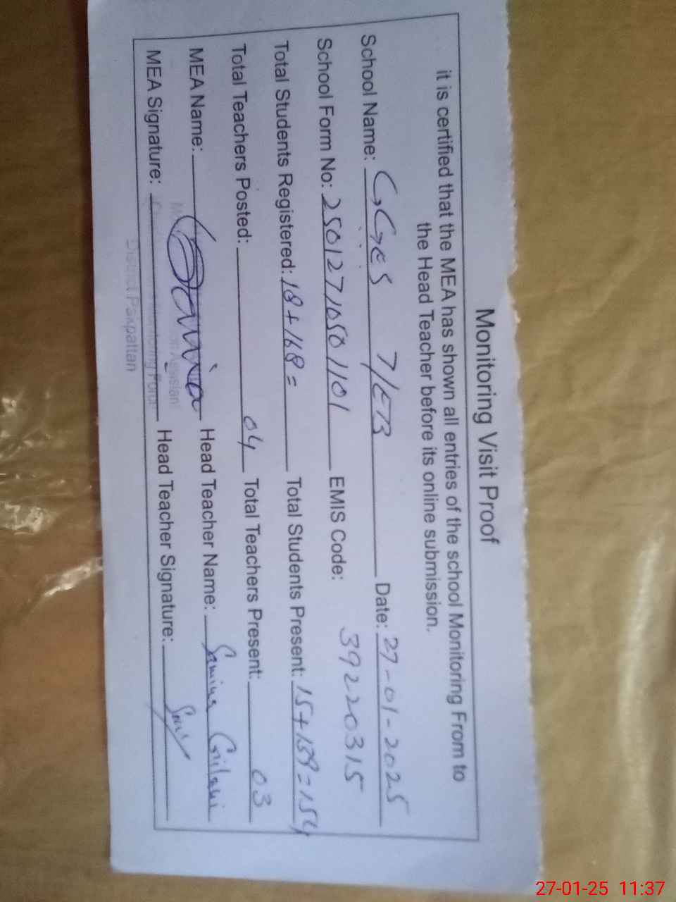 | EMIS Code: 39220315 | Name of School: GGES 7 EB POST OFFICE 7 EB | |||