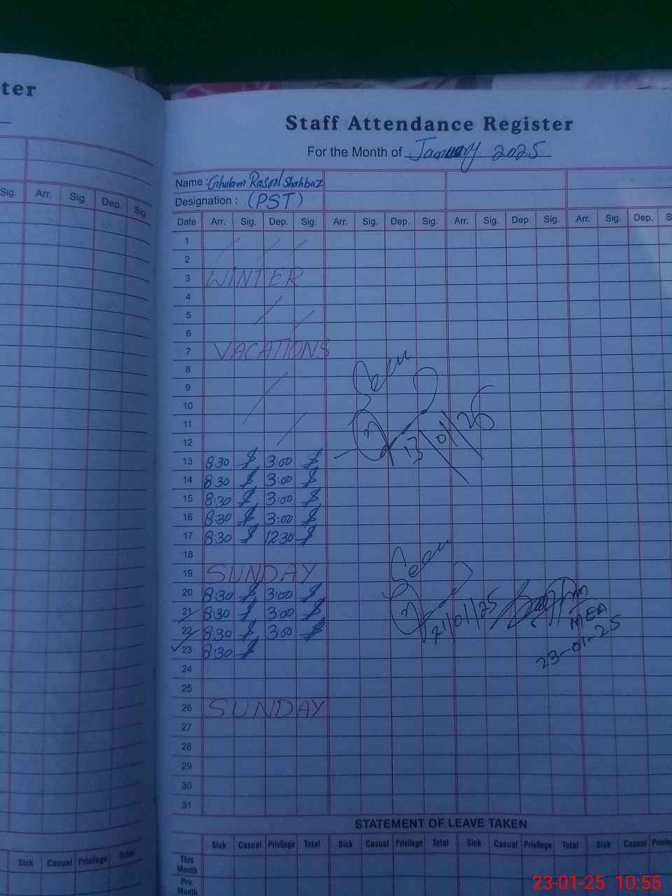 | Name: GH**** RA**** SH**** Designation: (School Headmaster's/Headmistress's) PST Phone/Cell Number: 03**** |