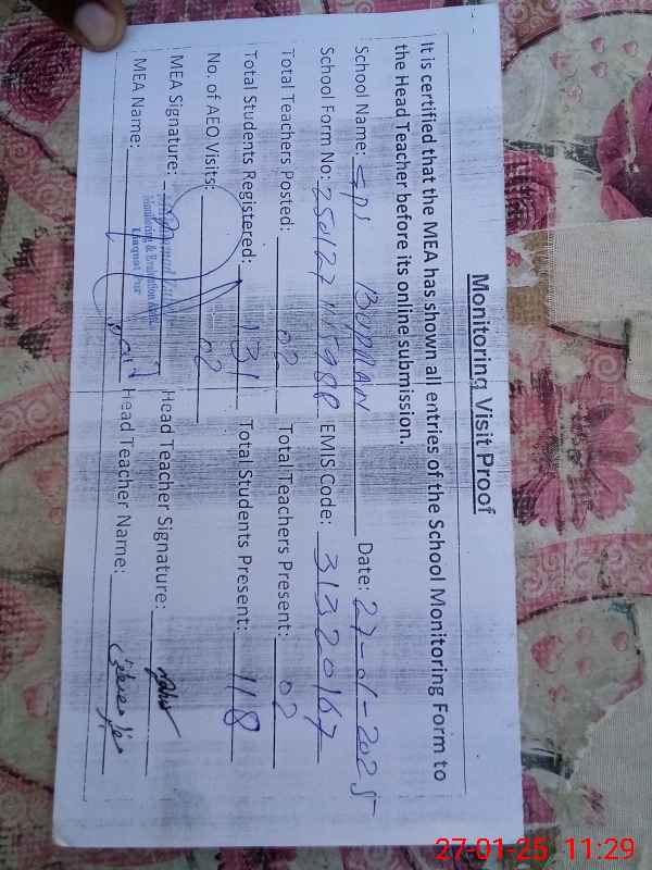 | Attendance Register | Head Teacher | MEA with School | Visit Proof |
