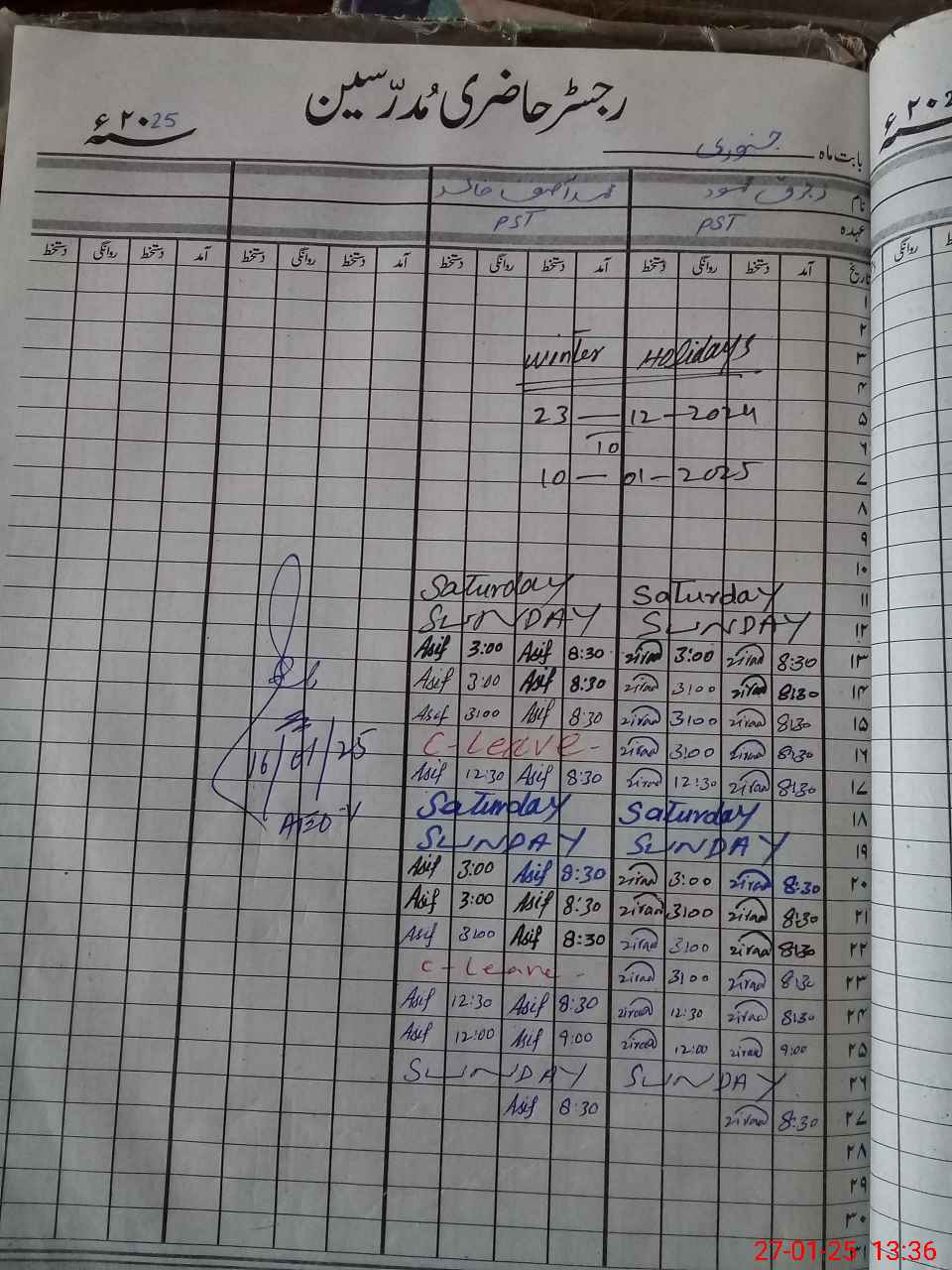 | CNIC | Full Name | Designation | R/C | Absence During Last Calender Month |