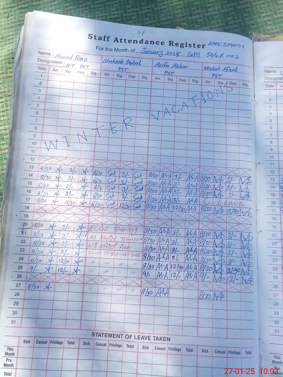 | Name: AH**** RI**** Designation: (School Headmaster's/Headmistress's) PTC Phone/Cell Number: 03**** |