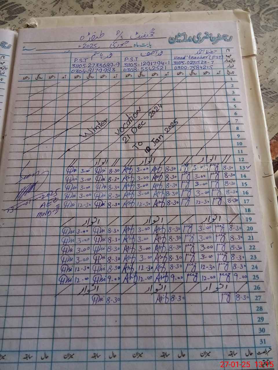 | Name: HA**** AH**** Designation: (School Headmaster's/Headmistress's) PST Phone/Cell Number: 03**** |