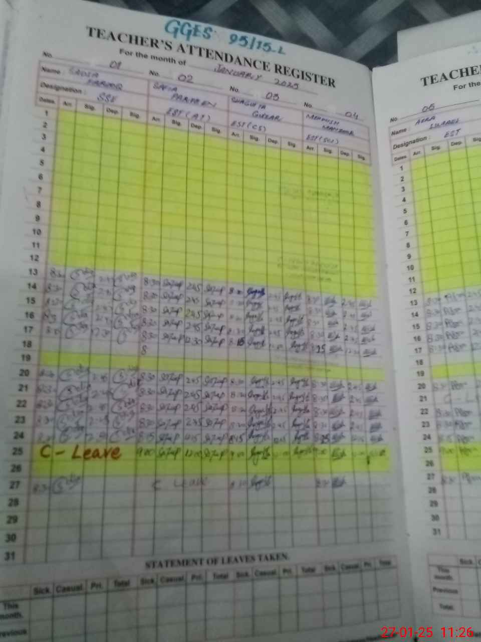 | No. of Students Present - Female | 8 | 0 | 37 | 32 | 34 | 37 | 36 | 34 | 46 | 39 | 35 | 338 | ||||